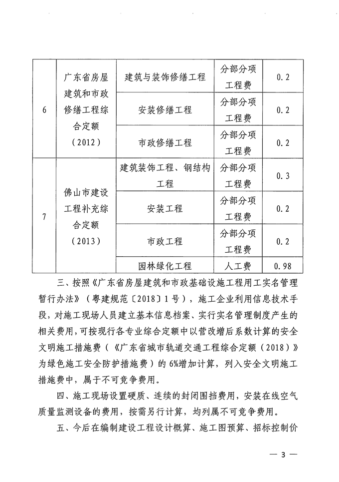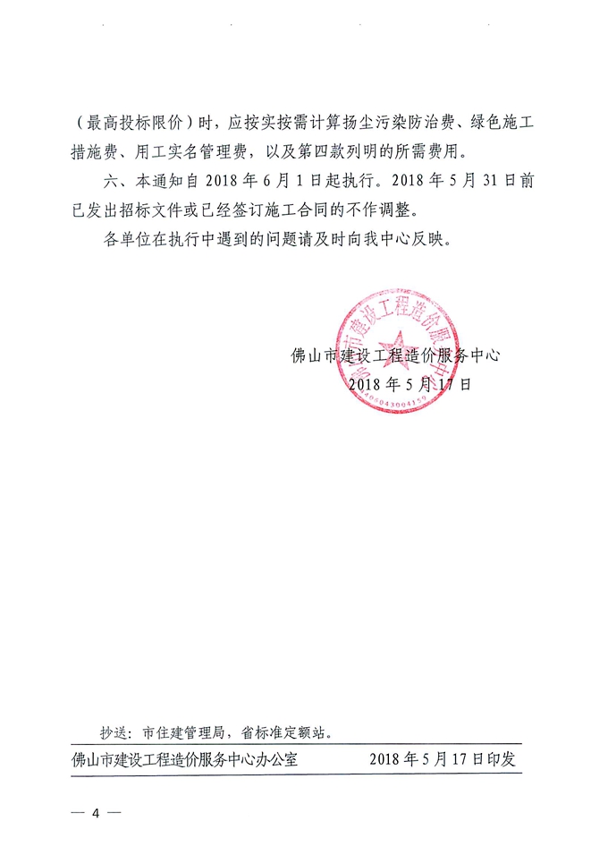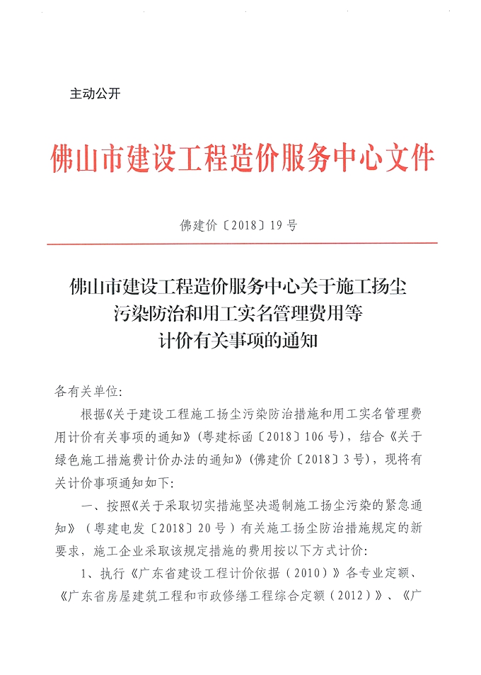 佛山市建設工程造價服務中心關于施工揚塵污染防治和用工實名管理費用等計價有關事項的通知