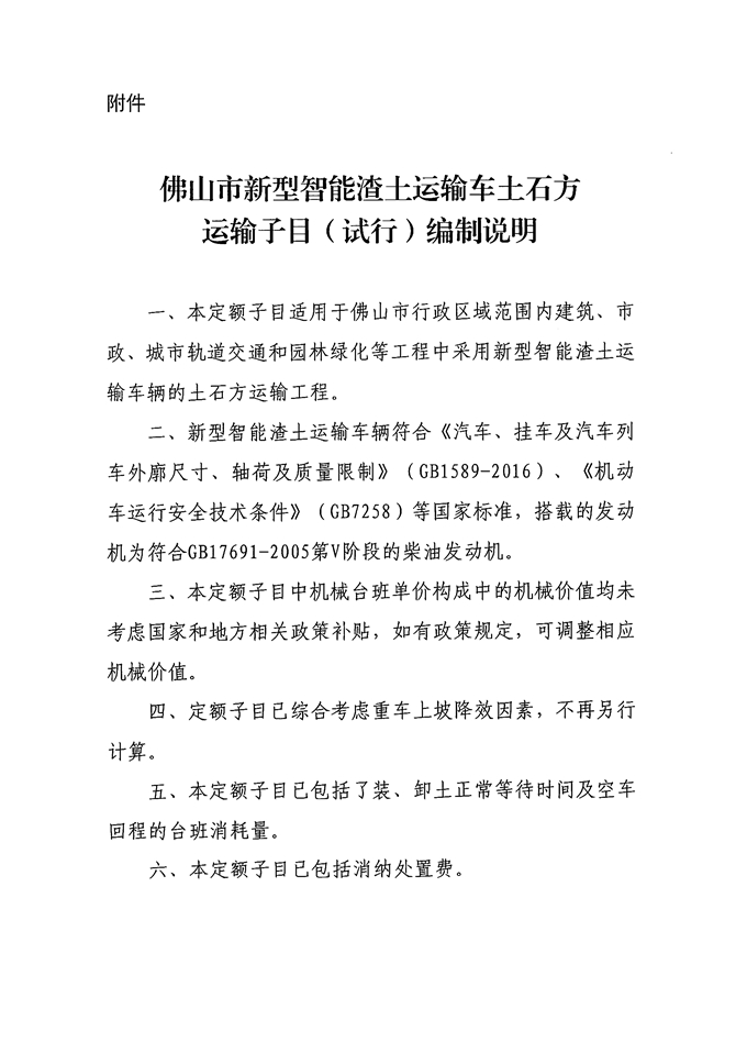 附件:《佛山市新型智能渣土運輸車土石方運輸子目(試行)》