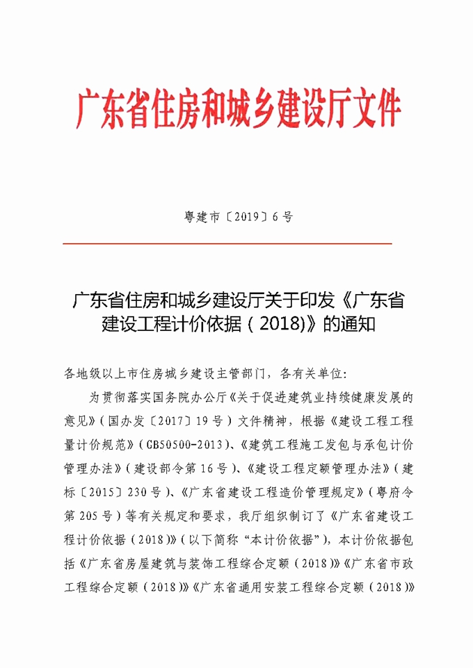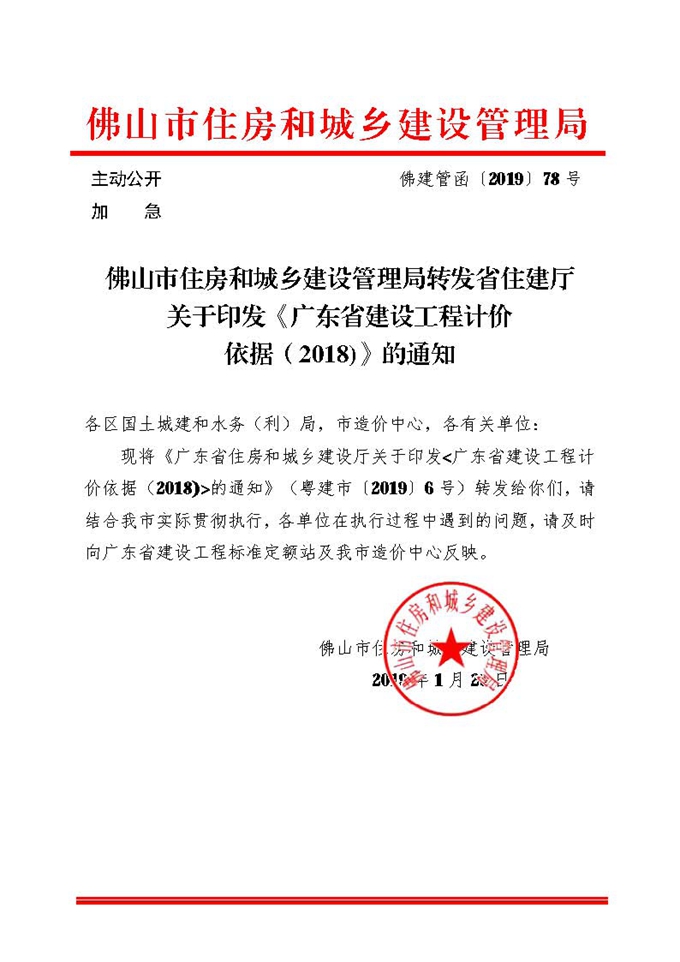 佛山市住房和城鄉(xiāng)建設管理局轉發(fā)省住建廳關于印發(fā)《廣東省建設工程計價依據(jù)(2018)》的通知