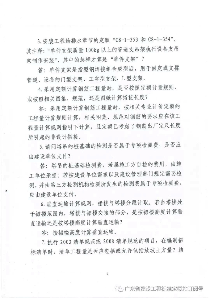【計價依據解釋】轉發《關于廣東省建設工程定額動態管理系統定額咨詢問題解答的函(第1期)》