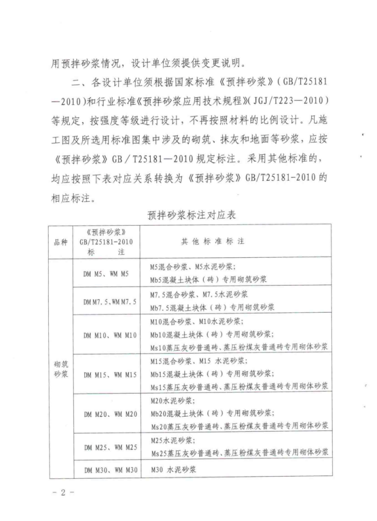 答:詳見附件《廣東省住房和城鄉建設廳關于明確預拌砂漿設計標注有關問題的通知》(粵建散函〔2015〕453號)。