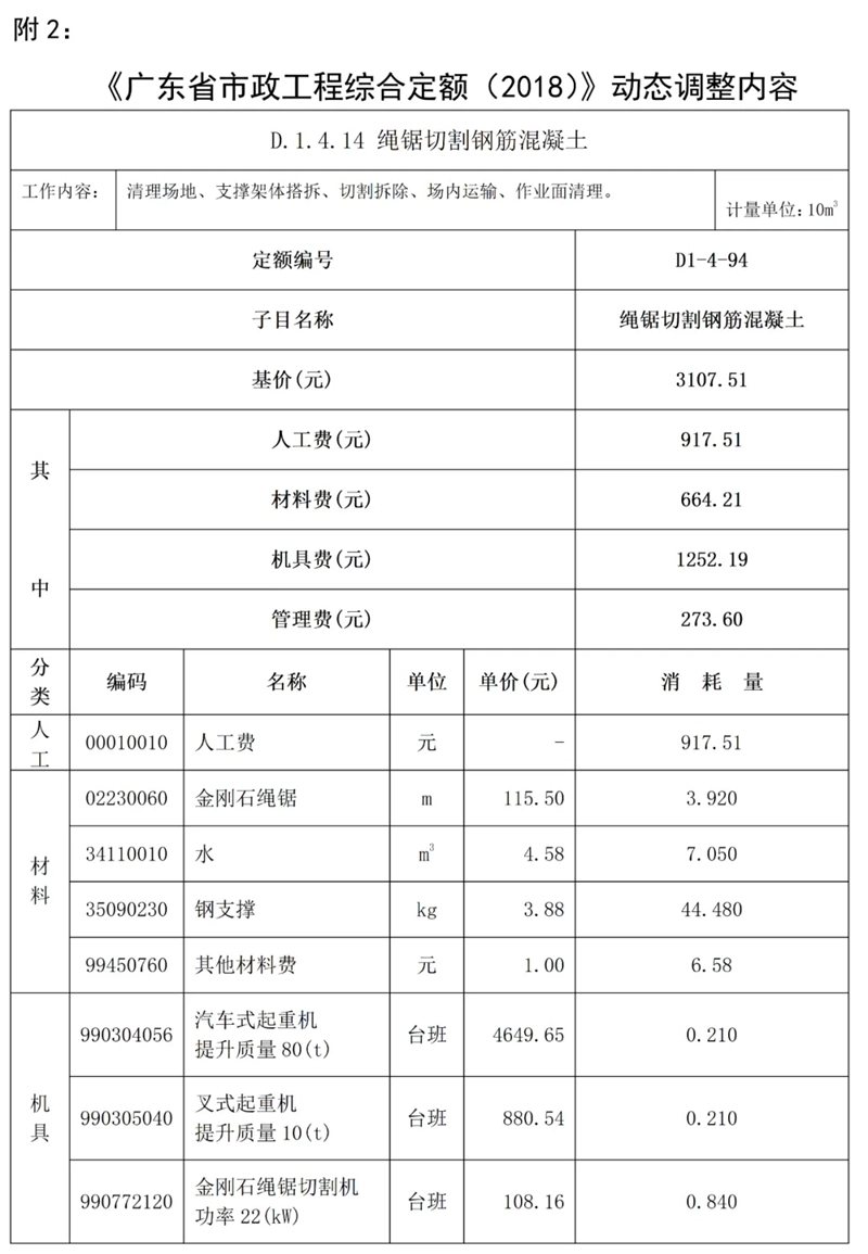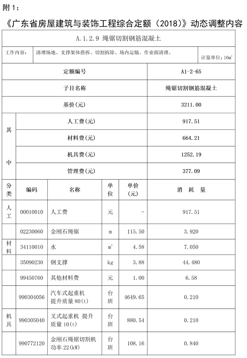 近期,我站組織專家研析了廣東省建設(shè)工程定額動(dòng)態(tài)管理系統(tǒng)收集的反饋意見(jiàn),補(bǔ)充《廣東省建設(shè)工程計(jì)價(jià)依據(jù) (2018)》繩鋸切割鋼筋混凝土定額子目,現(xiàn)印發(fā)你們,請(qǐng)遵照?qǐng)?zhí)行。