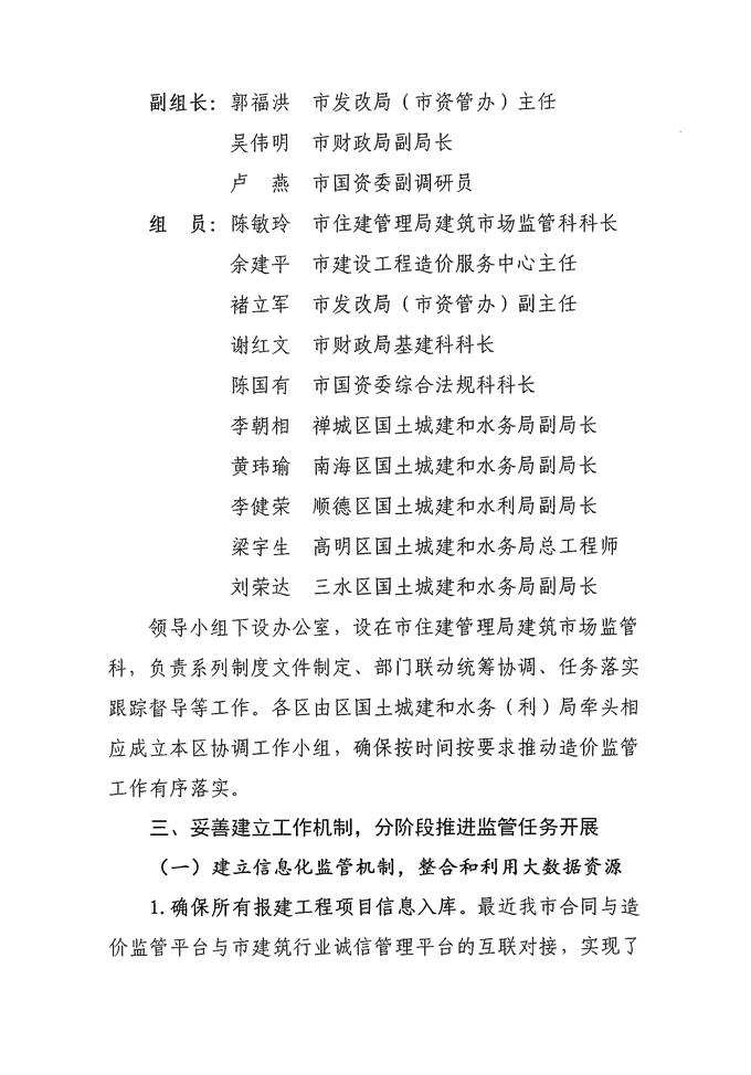 佛山市住房和城鄉建設管理局印發《佛山市住房和城鄉建設管理局關于加強和改善工程造價監管工作實施方案》的通知