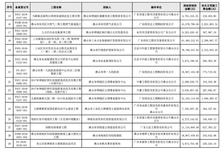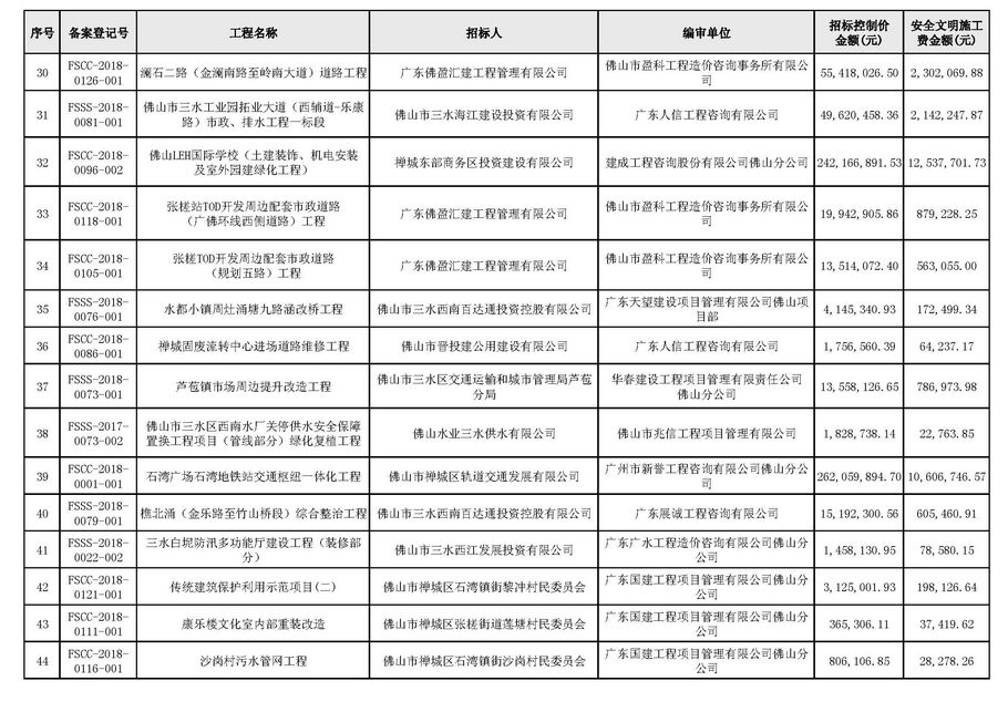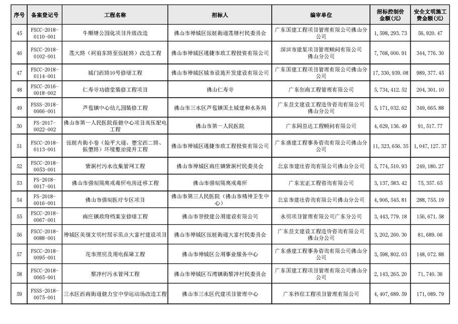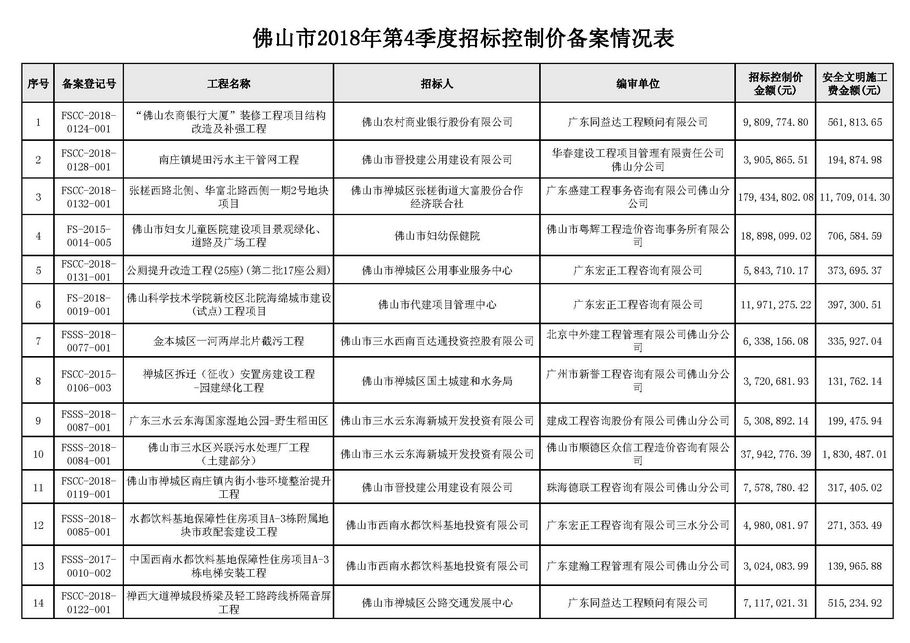 佛山市建設(shè)工程造價(jià)服務(wù)中心關(guān)于公布2018年第4季度佛山市招標(biāo)控制價(jià)備案情況的通知
