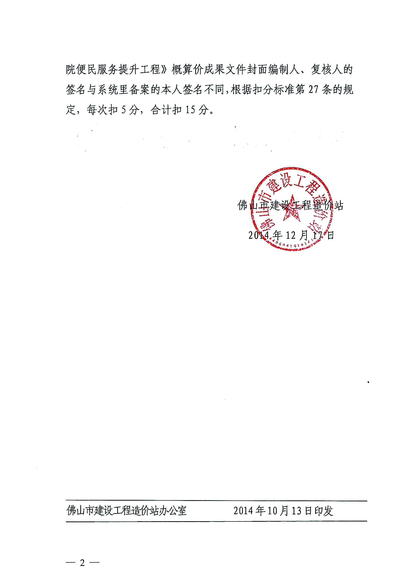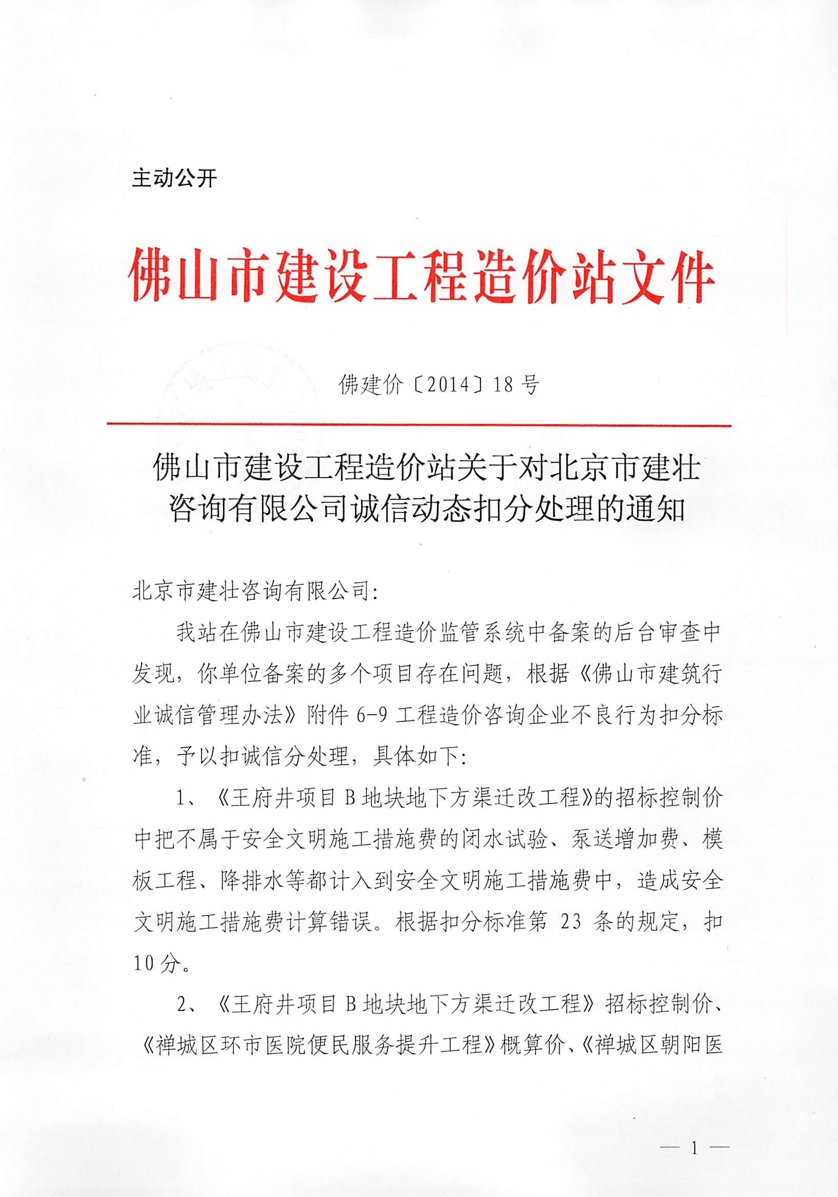 佛山市建設(shè)工程造價(jià)站關(guān)于對(duì)北京市建壯咨詢有限公司誠(chéng)信動(dòng)態(tài)扣分處理的通知