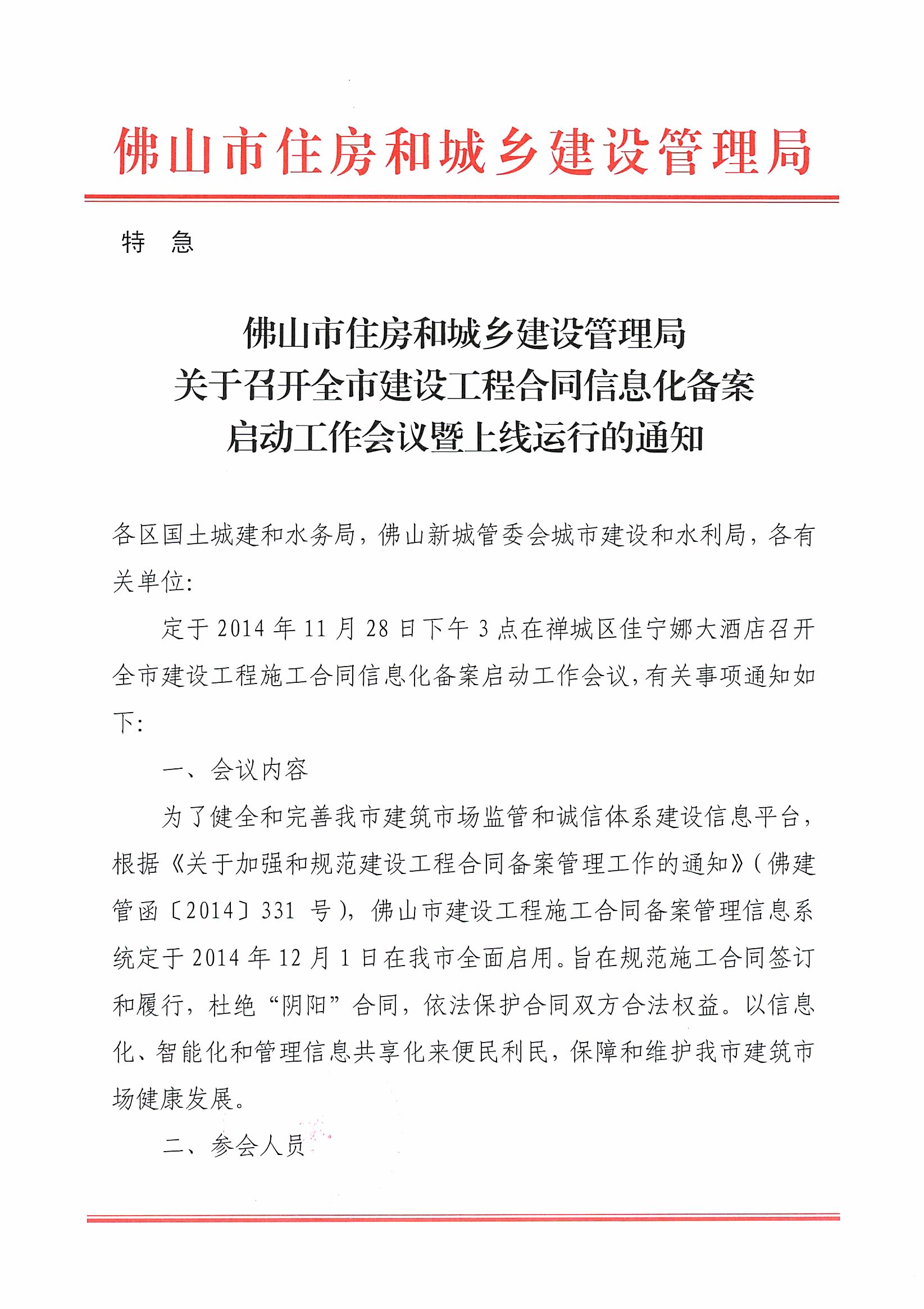 佛山市住房和城鄉(xiāng)建設(shè)管理局關(guān)于召開全市建設(shè)工程合同信息化備案啟動工作會議暨上線運行的通知