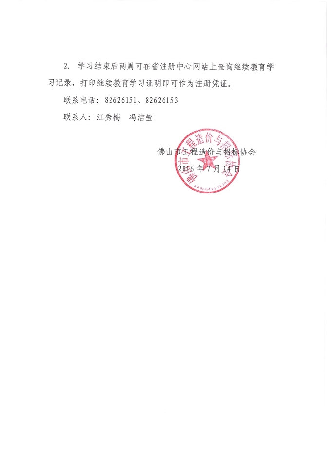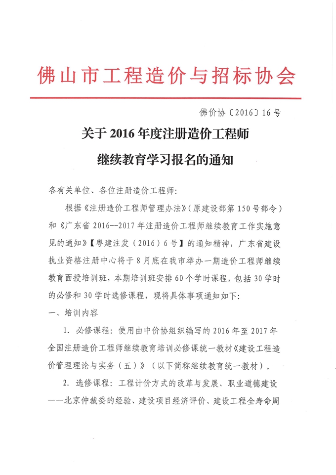 關于2016年度注冊造價工程師繼續教育學習報名的通知