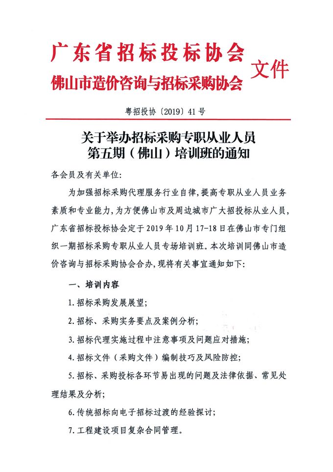 關于舉辦招標采購專職從業人員第五期(佛山)培訓班的通知
