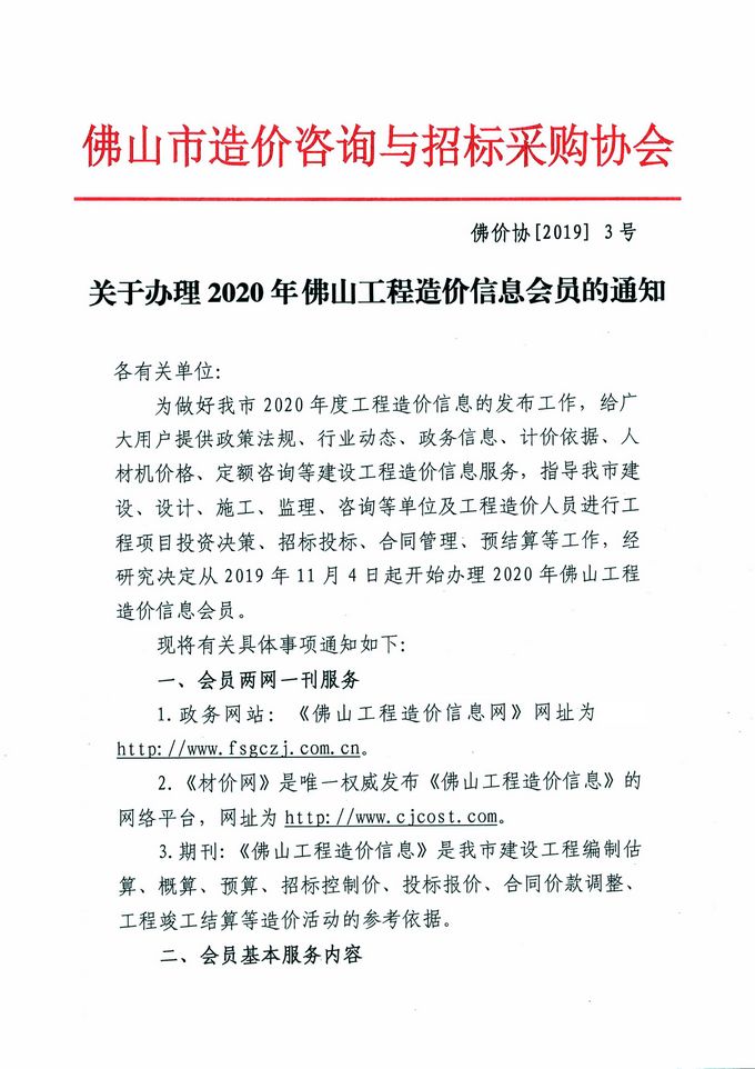 關于辦理2020年佛山工程造價信息會員的通知