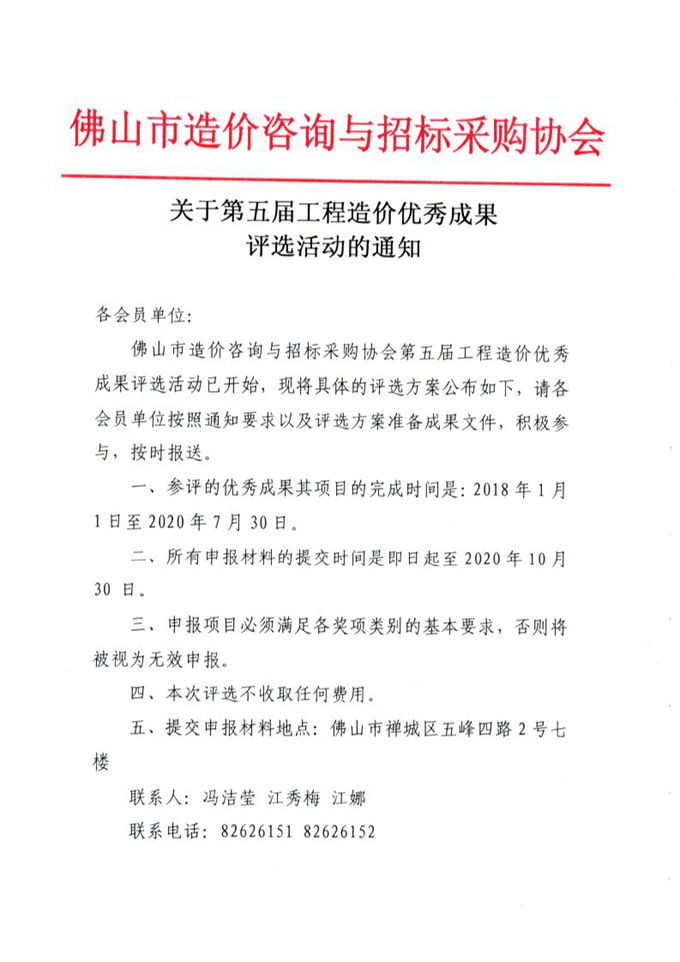 關于第五屆工程造價優秀成果評選活動的通知