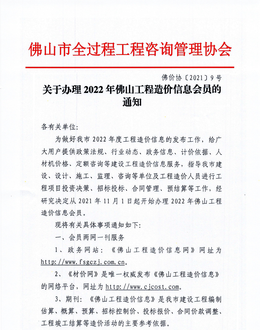 關于辦理2022年佛山工程造價信息會員的通知