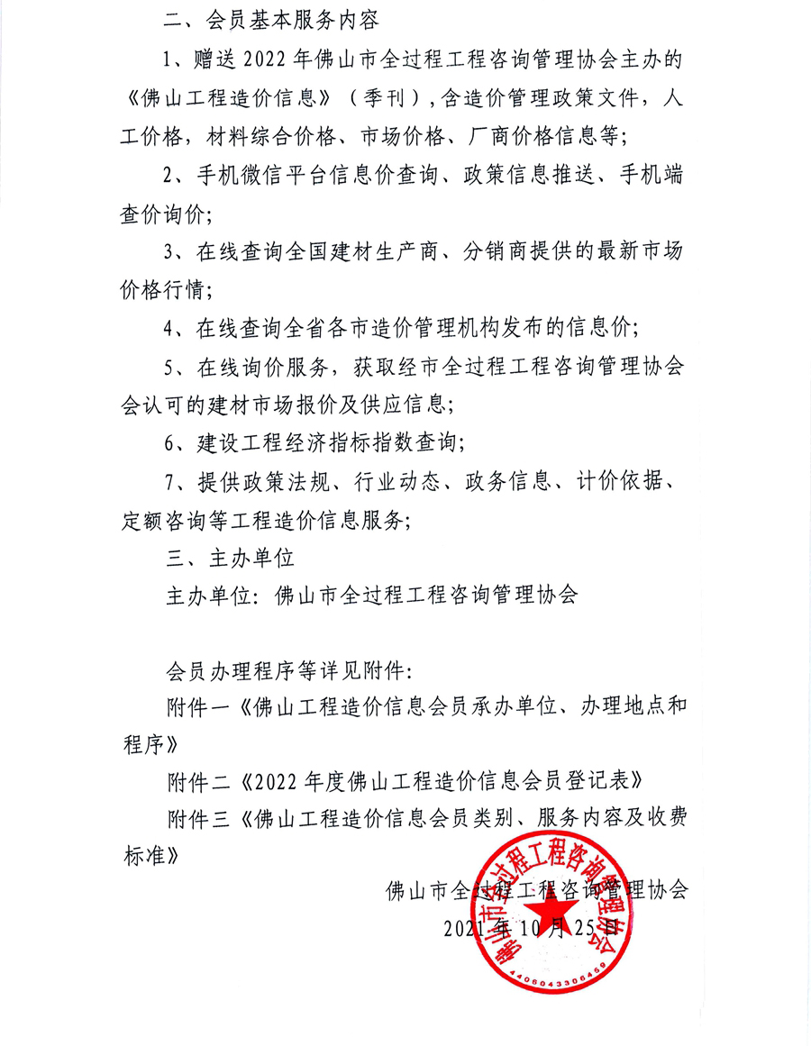 附件三《佛山工程造價信息會員類別、服務內容及收費標準》