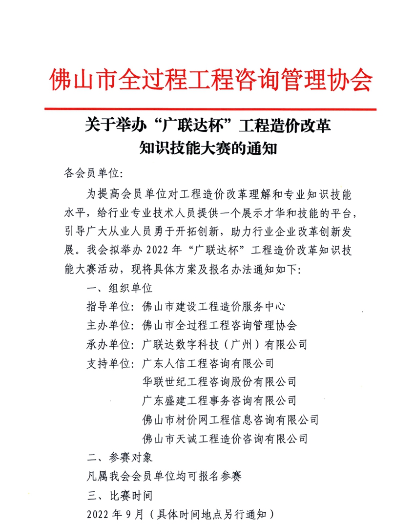 關(guān)于舉辦“廣聯(lián)達杯”工程造價改革知識技能大賽的通知