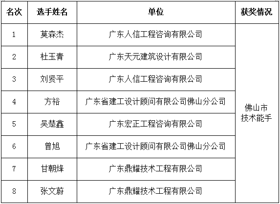 二、佛山市技術(shù)能手