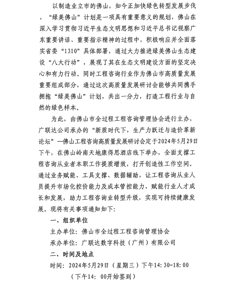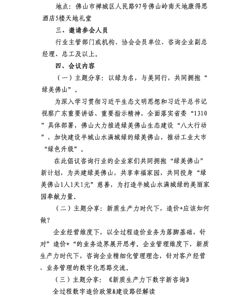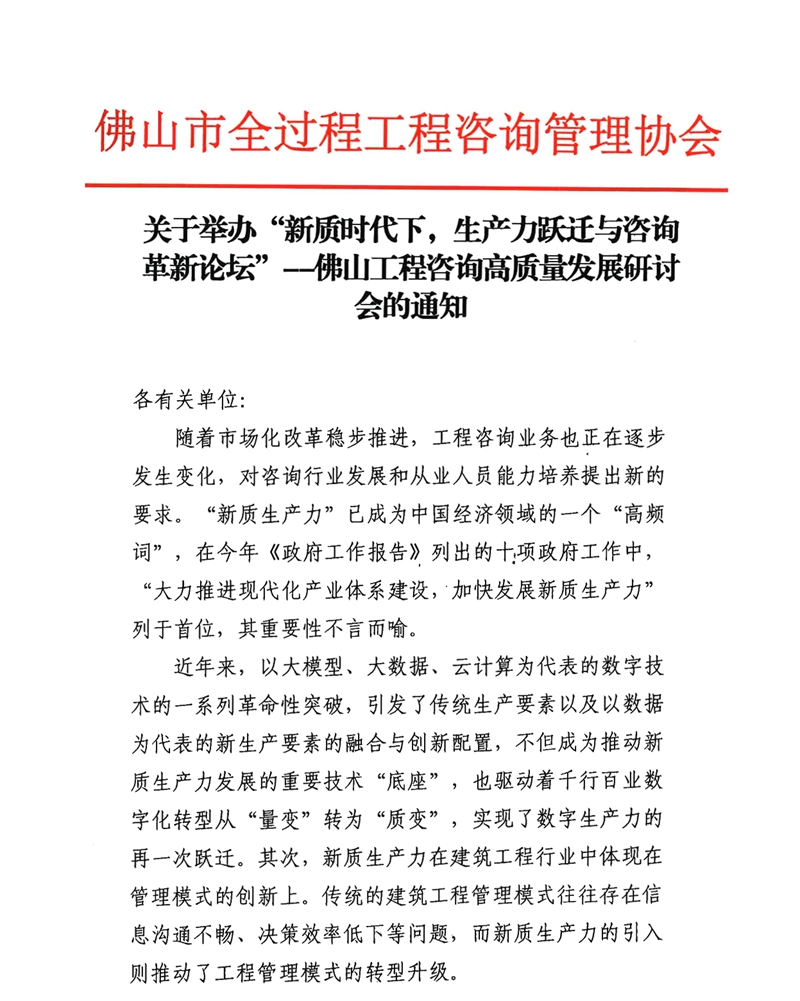 關于舉辦“新質時代下,生產力躍遷與咨詢革新論壇”——佛山工程咨詢高質量發展研討會的通知