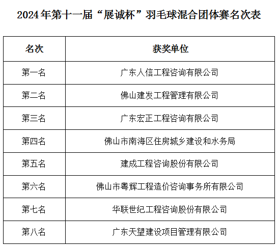 “展誠”相遇 無“羽”倫比 | 佛山市全過程工程咨詢管理協會2024年第十一屆“展誠杯”羽毛球團體賽圓滿落幕