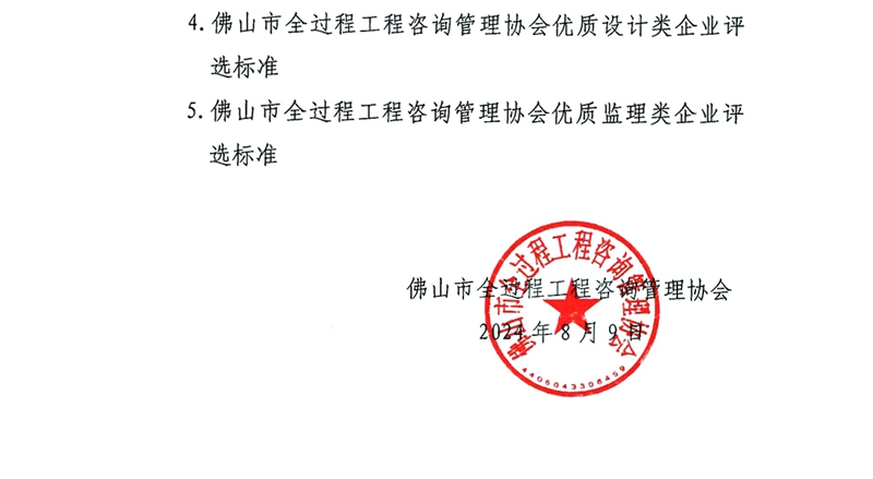 佛山市全過程工程咨詢管理協會關于開展2024年優質企業評選活動的通知