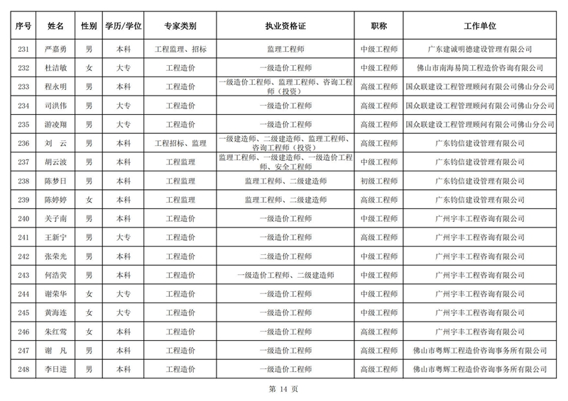 佛山市全過程工程咨詢管理協會關于公布專家庫名單的通知
