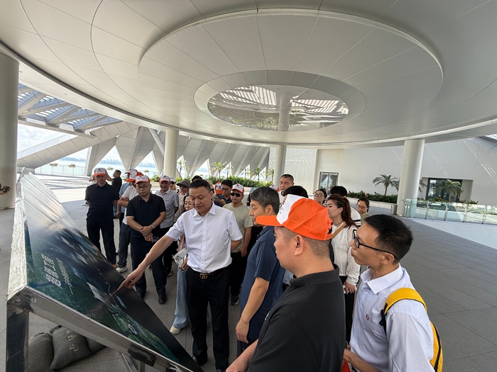 調研組先后參觀了深中大橋、西人工島、海底沉管隧道等深中通道的關鍵節點,近距離領略“深中巨龍”“灣區脊梁”的魅力。在西人工島上,工作人員詳細介紹了項目從規劃設計到建設施工,再到運營籌備的全過程,重點講解了工程建設中遇到的技術挑戰以及創新解決方案,讓調研團隊對這座超級工程有了更全面、深入的認識。