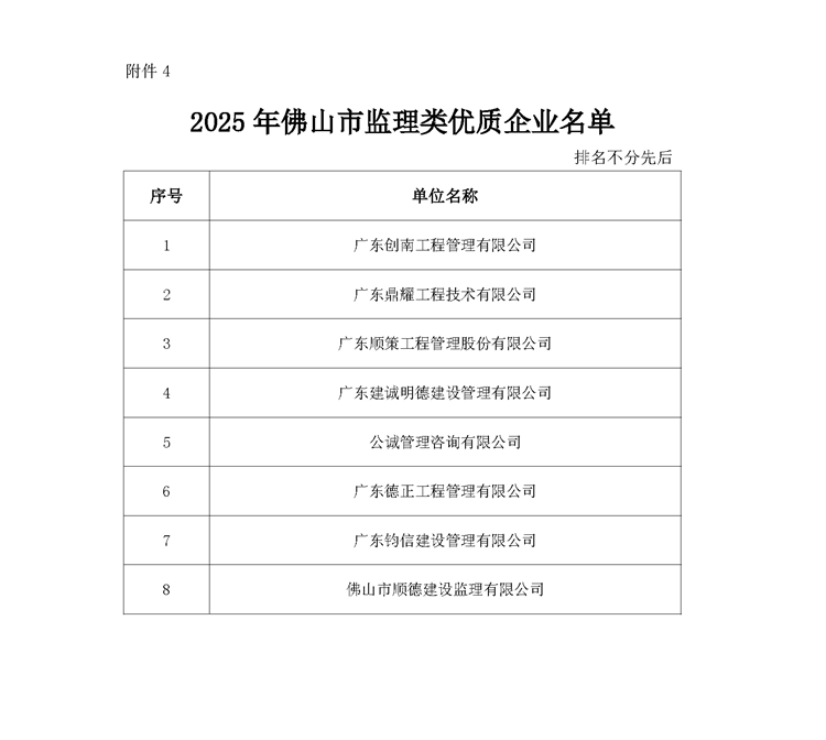 關于公布2025年佛山市全過程工程咨詢優質企業評價結果的通知