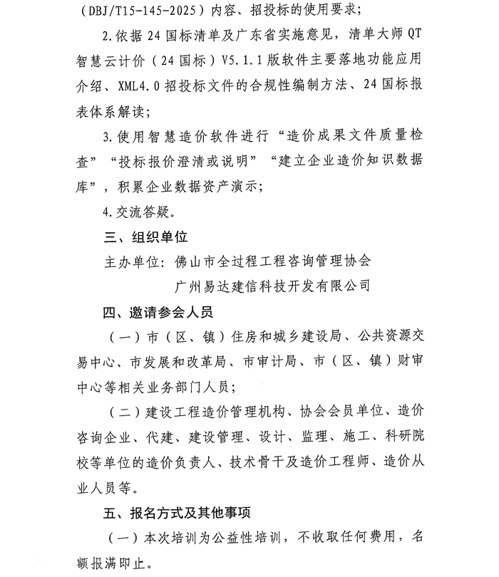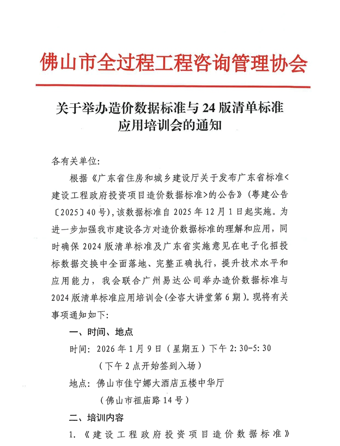 關于舉辦造價數據標準與24版清單標準應用培訓會的通知