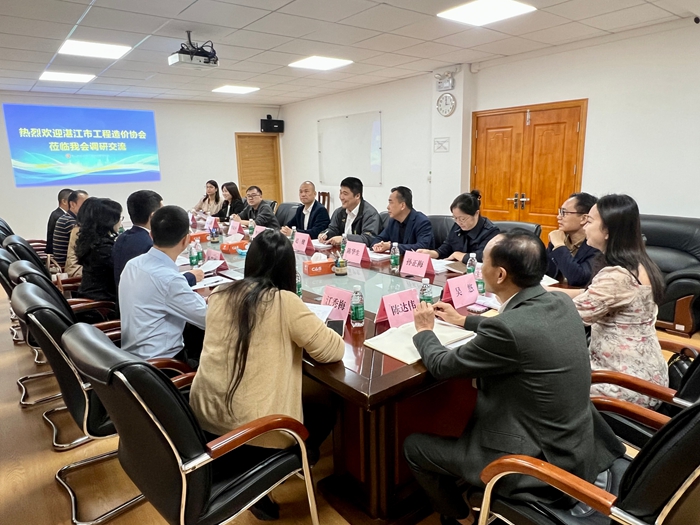 12月18日下午,湛江市建設(shè)工程造價(jià)事務(wù)中心及湛江市工程造價(jià)協(xié)會(huì)領(lǐng)導(dǎo)攜企業(yè)代表10余人到訪我會(huì)開(kāi)展調(diào)研交流。協(xié)會(huì)輪值會(huì)長(zhǎng)黃文、黨支部書(shū)記羅瑛瑋、副會(huì)長(zhǎng)兼秘書(shū)長(zhǎng)林深榆、副會(huì)長(zhǎng)孫康全、副會(huì)長(zhǎng)黎漢君、副會(huì)長(zhǎng)林兆昌、副秘書(shū)長(zhǎng)江秀梅等參加了調(diào)研交流活動(dòng)。