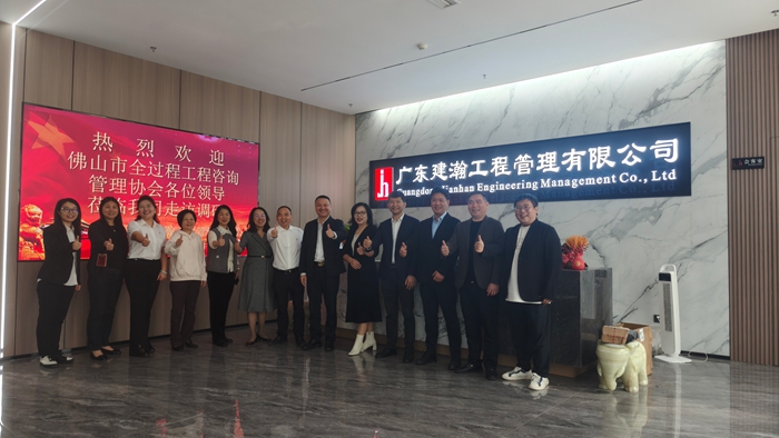 12月22日上午,協(xié)會(huì)會(huì)長(zhǎng)張思中、輪值會(huì)長(zhǎng)黃文、黨支部書(shū)記羅瑛瑋、副會(huì)長(zhǎng)兼秘書(shū)長(zhǎng)林深榆、理事呂巧璇、梁燕芬、殷華明、會(huì)員吳暢歡、楊穎、副秘書(shū)長(zhǎng)江秀梅一行10人,赴廣東建瀚工程管理有限公司開(kāi)展走訪調(diào)研。建瀚公司董事長(zhǎng)胡罕才、佛山分公司總經(jīng)理胡婧等熱情接待并參與座談。