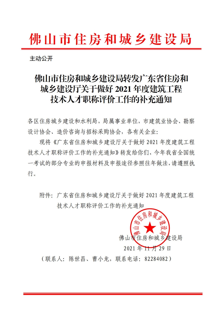 附件:廣東省住房和城鄉(xiāng)建設廳關于做好2021年度建筑工程技術人才職稱評價工作的補充通知