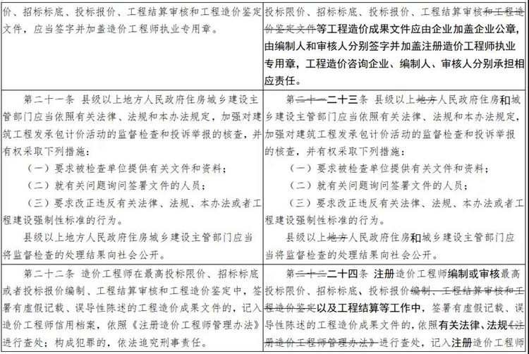 此外,關于信用管理、行業自律、工程造價成果文件的具體要求、造價工程師責任落實等內容擬在《工程造價咨詢業管理辦法》修訂工作中予以考慮,本辦法不再贅述。