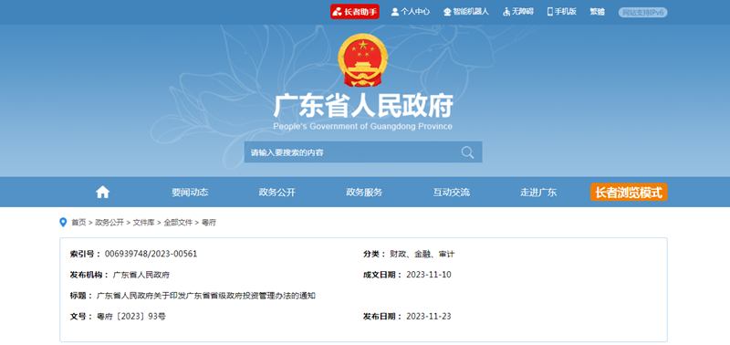轉(zhuǎn)發(fā) | 廣東省人民政府關(guān)于印發(fā)廣東省省級(jí)政府投資管理辦法的通知