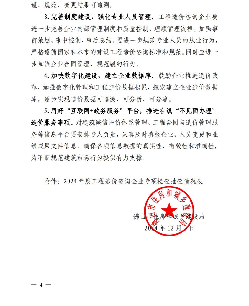 轉(zhuǎn)發(fā) | 佛山市住房和城鄉(xiāng)建設(shè)局關(guān)于2024年度全市工程造價(jià)咨詢企業(yè)專項(xiàng)檢查情況的通報(bào)