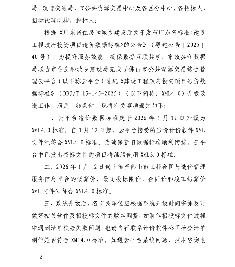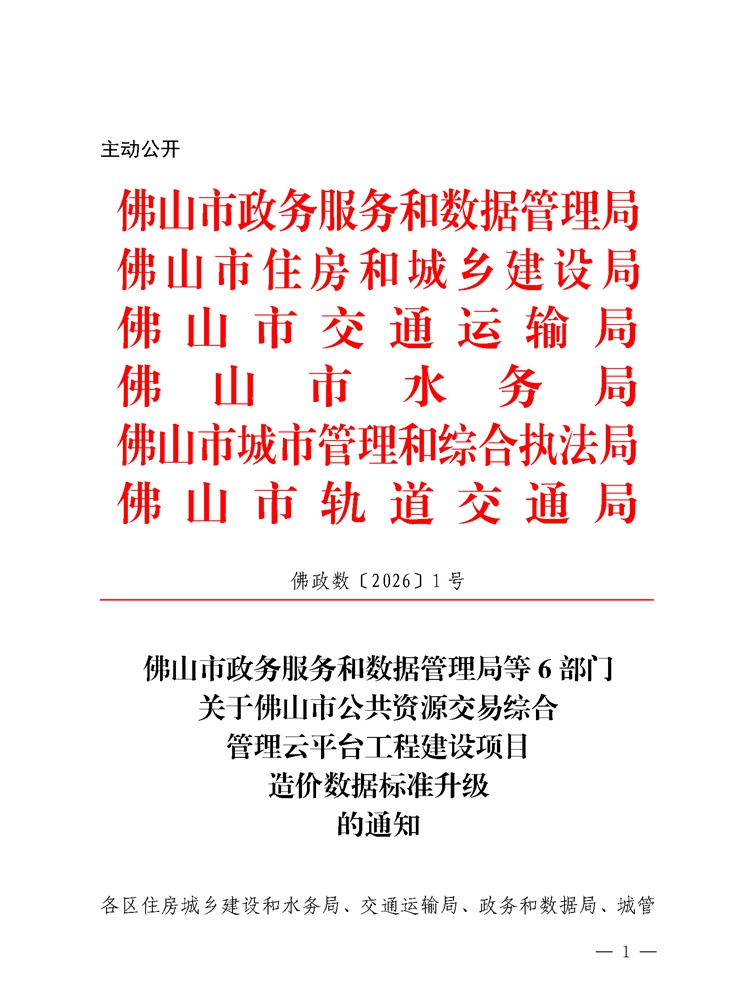 轉發 | 佛山市政務服務和數據管理局等6部門關于佛山市公共資源交易綜合管理云平臺工程建設項目造價數據標準升級的通知