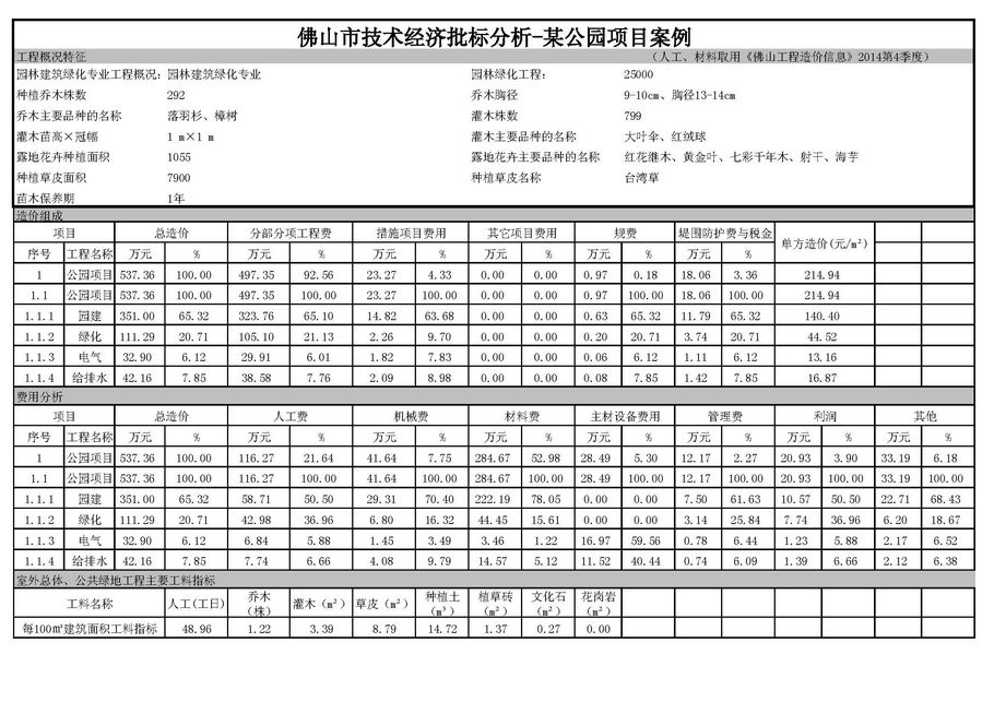 佛山市2015年第2季度技術經濟指標分析—某公園項目案例