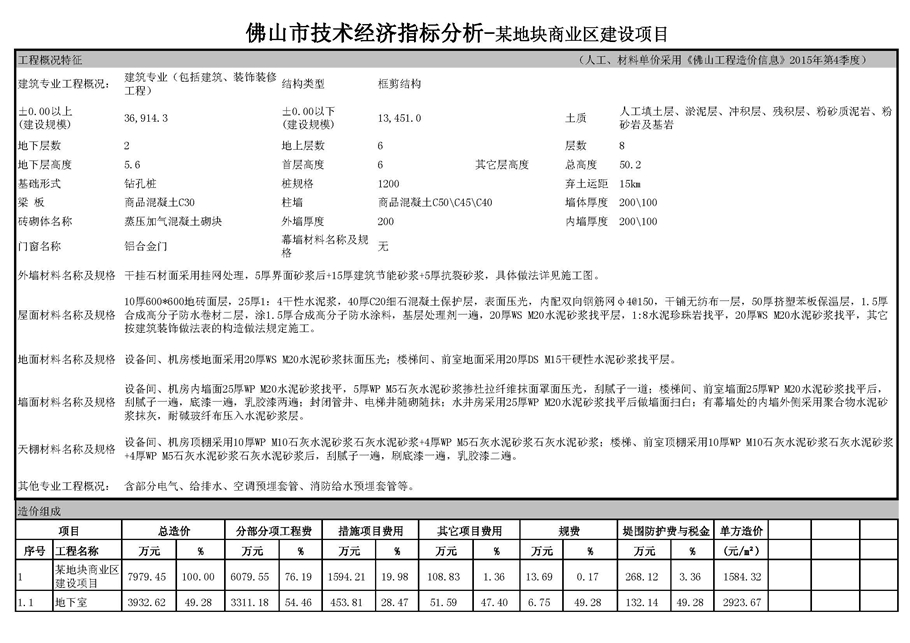 佛山市2016年第2季度技術經濟指標分析—某地塊商業區建設項目