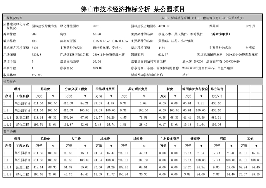 佛山市2017年第1季度技術經濟指標分析—某公園項目案例
