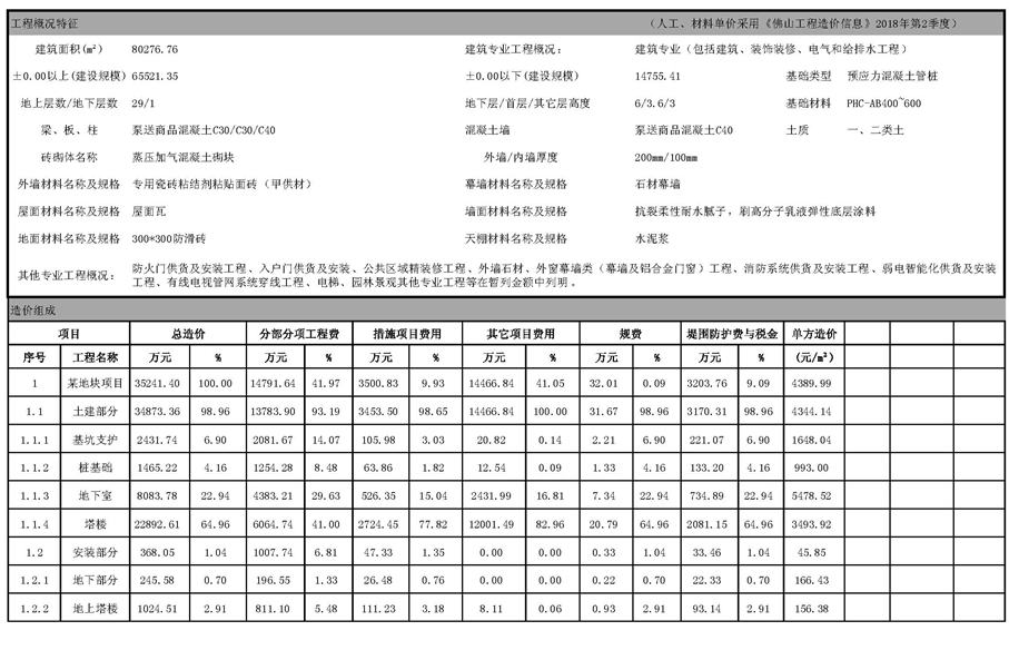 佛山市2018年第3季度技術(shù)經(jīng)濟指標分析—某地塊項目