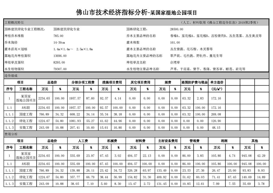佛山市2019年第3季度技術(shù)經(jīng)濟指標分析—某國家濕地公園項目