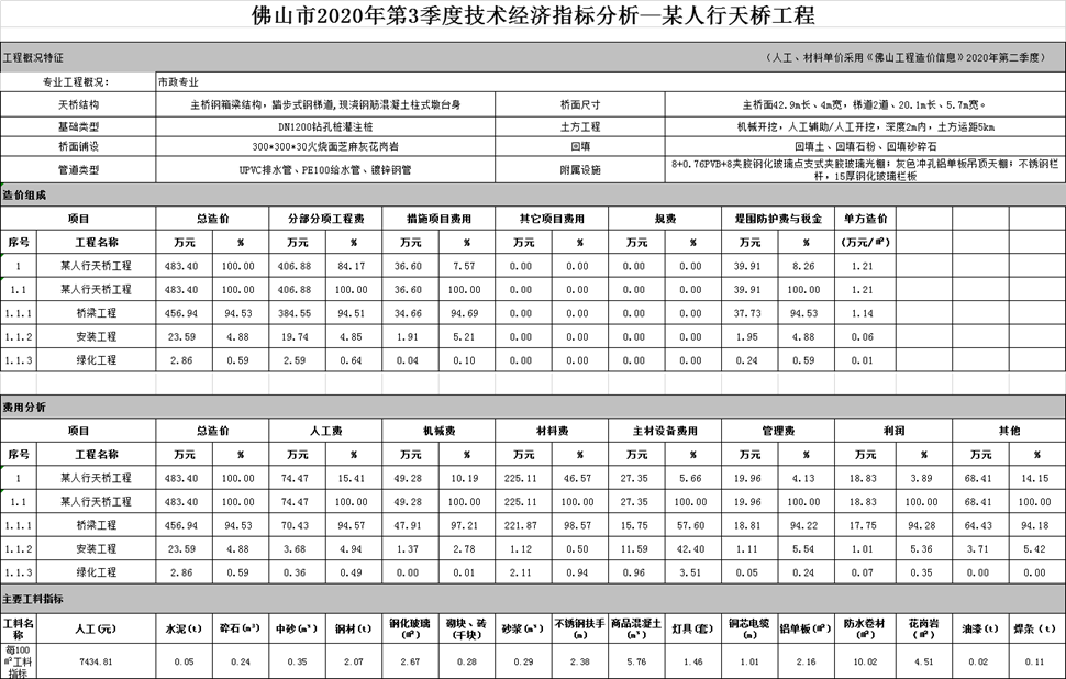 佛山市2020年第3季度技術經濟指標分析—某人行天橋工程