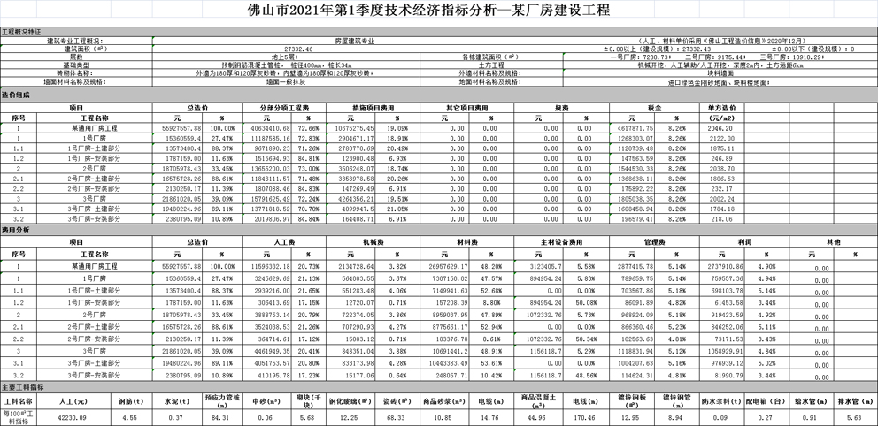 佛山市2021年第1季度技術(shù)經(jīng)濟(jì)指標(biāo)分析—某廠房建設(shè)工程