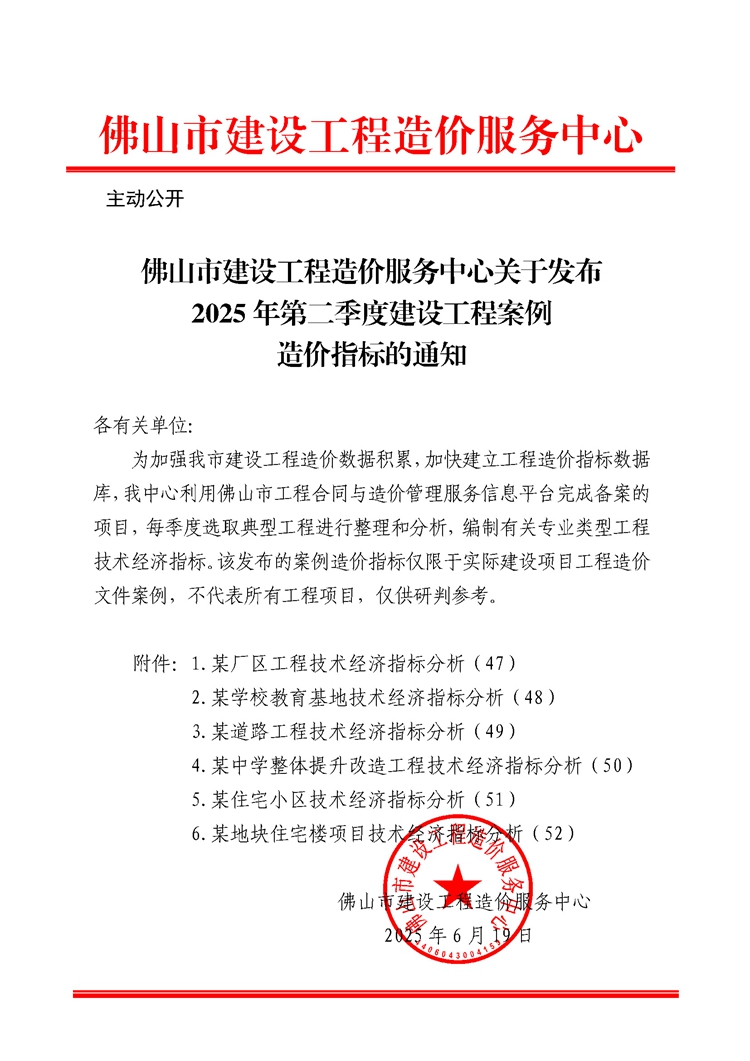 轉(zhuǎn)發(fā) | 佛山市建設(shè)工程造價(jià)服務(wù)中心關(guān)于發(fā)布2025年第二季度建設(shè)工程案例造價(jià)指標(biāo)的通知