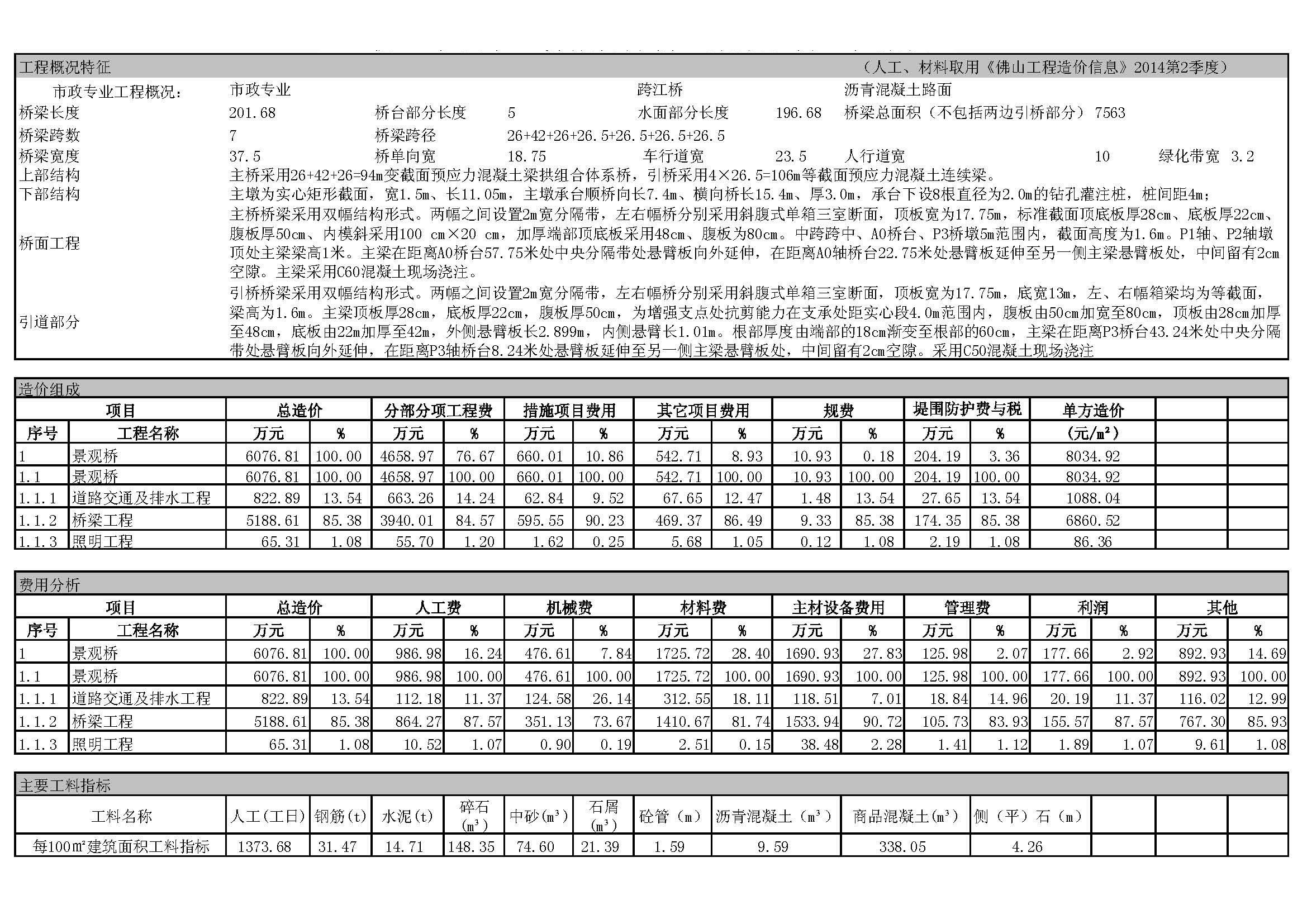 佛山市2014年第4季度技術(shù)經(jīng)濟(jì)指標(biāo)分析—某景觀橋工程案例
