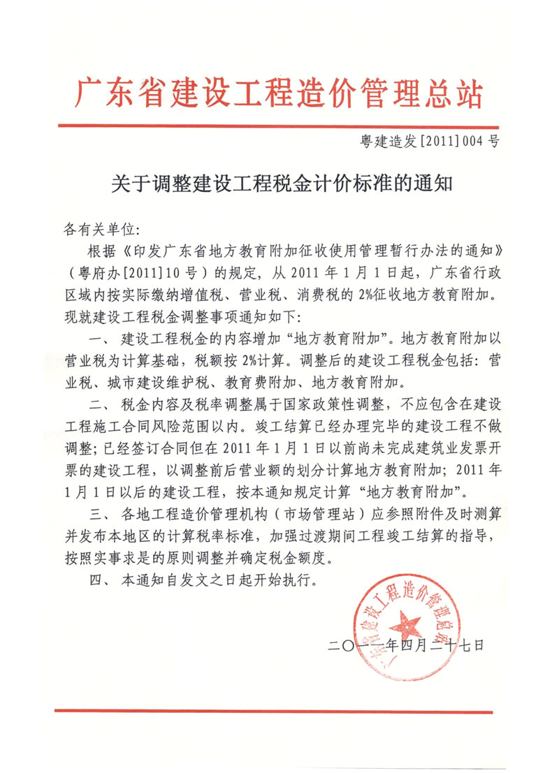關(guān)于調(diào)整建設(shè)工程稅金計(jì)價(jià)標(biāo)準(zhǔn)的通知