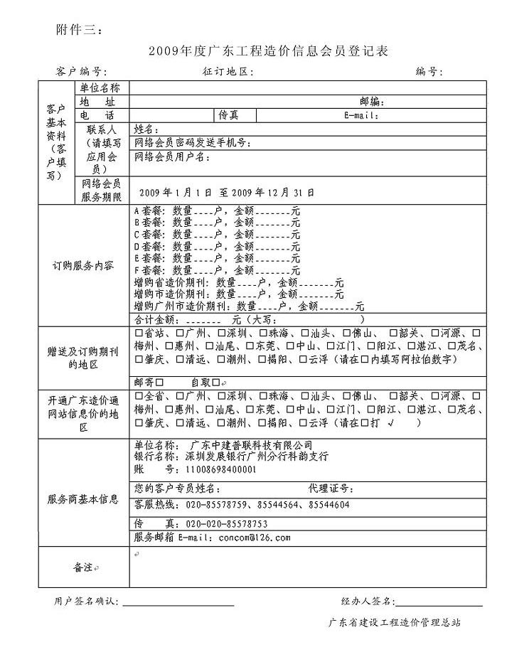 附件二:2009年度廣東工程造價(jià)信息會(huì)員登記表.doc